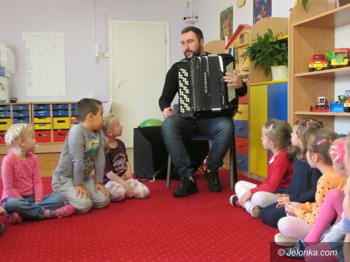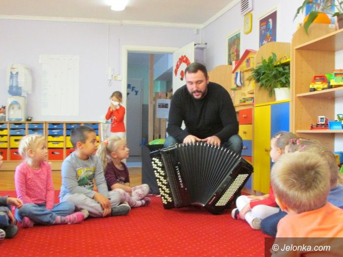 Akordeonista Piotr Wyrostek u przedszkolaków
