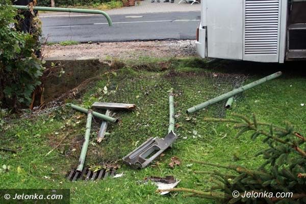 Autobus uderzył w Karpaczu w skodę, potem w mur i wjechał do ogrodu