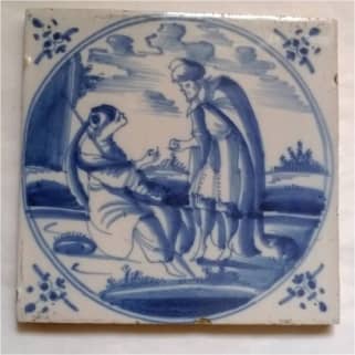 Flizy, Chrystus i Samarytanka, XVIII w., fajans, malowanie, szkliwienie, wypalanie