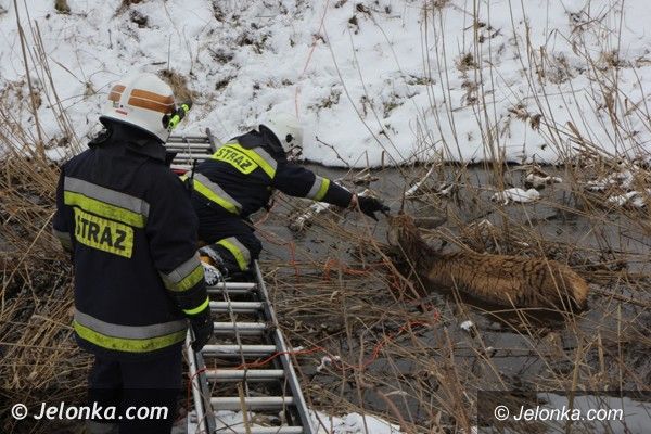 Chmara jeleni wpadła do stawu w Podgórzynie, zwierzęta ratowali strażacy