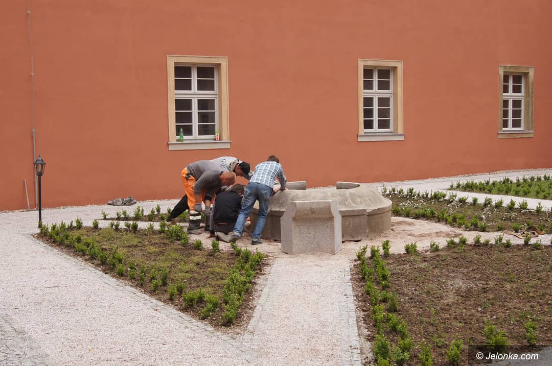 Fragment nowego wirydarza ze studnią