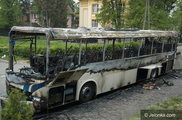 Gorąca noc przed hotelem – autobus w ogniu