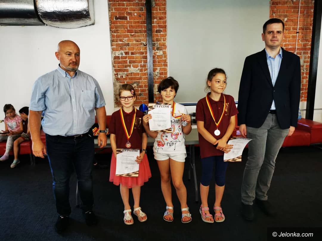 Od lewej: Robert Krasiewicz, prezes MZSzach, Joanna Ksionek (brąz), Katarzyna Tkacz (srebro), Natalia Walewska (złoto), Radosław Jedynak, prezes PZSzach GM.
