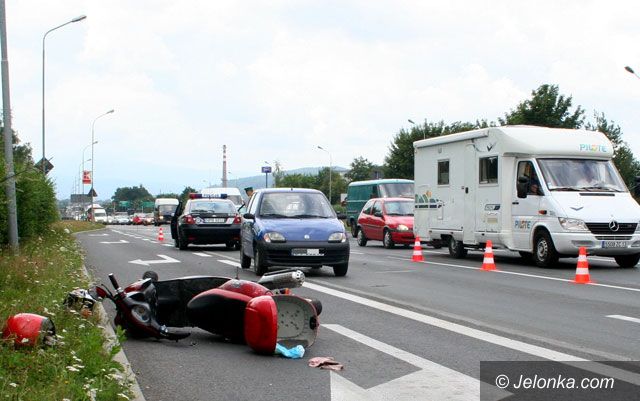 Kierowca wjechał w jednoślad: potrącony skuterzysta w szpitalu