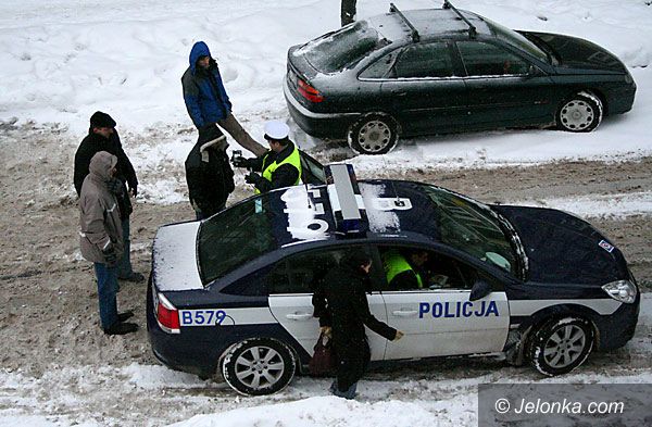 Policja podczas interwencji po stłuczce na rogu Klonowica i Okrzei.
