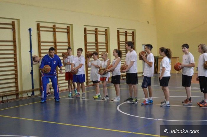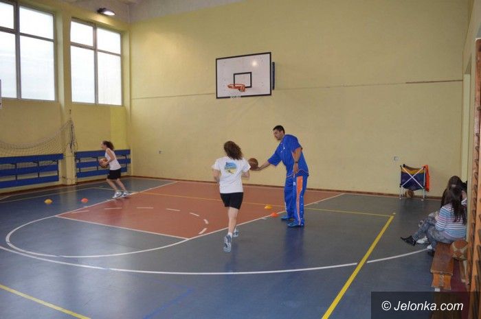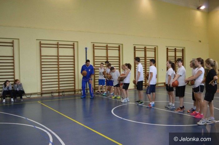 Lekcja wychowania fizycznego z udziałem koszykarza
