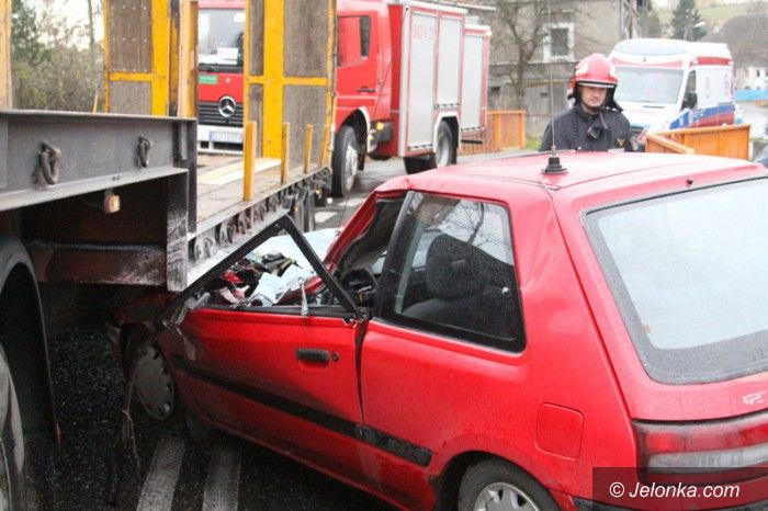 Mazda wbiła się w ciężarówkę w Dziwiszowie