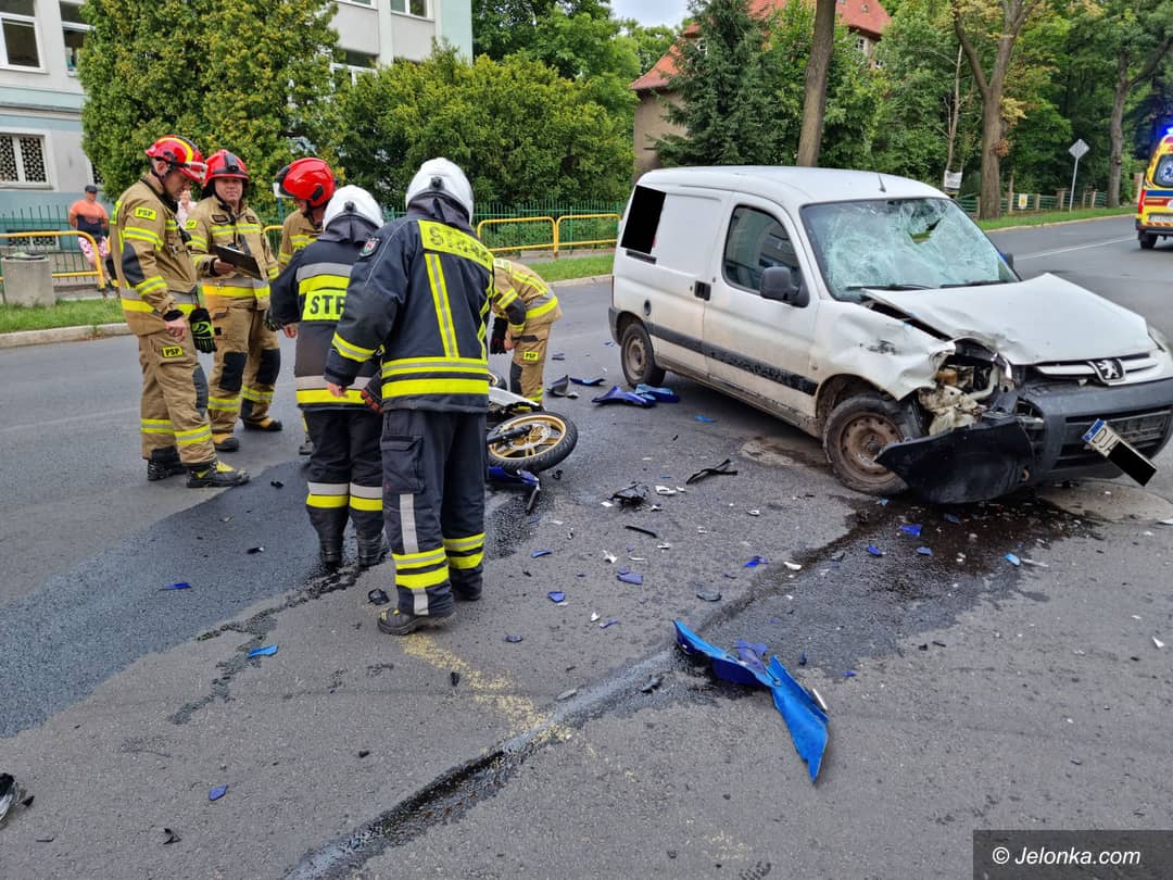 Motocyklista pod kołami osobówki