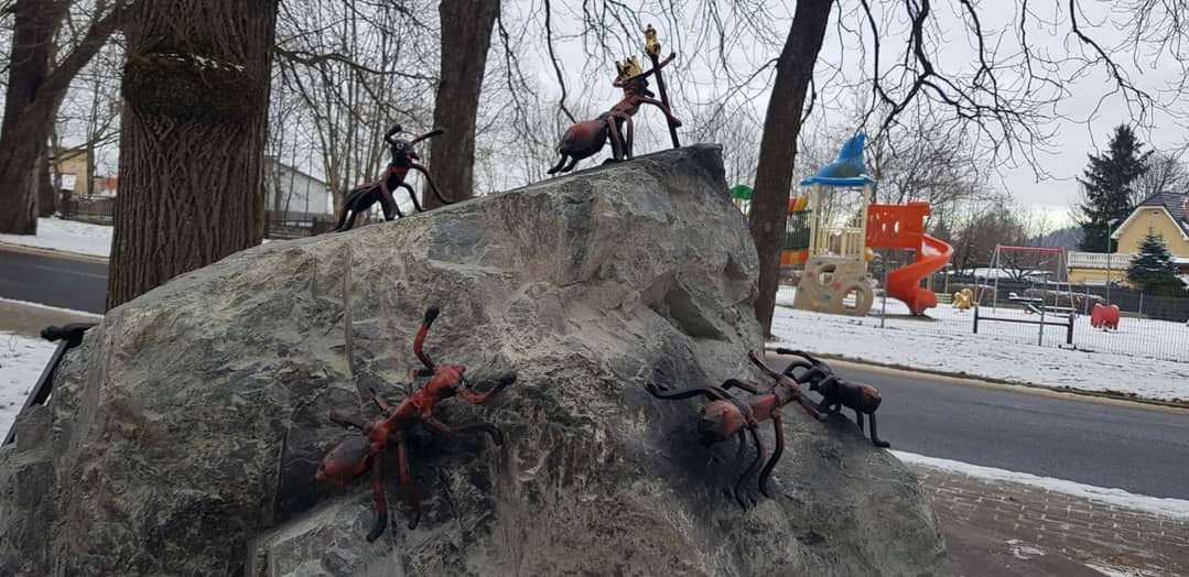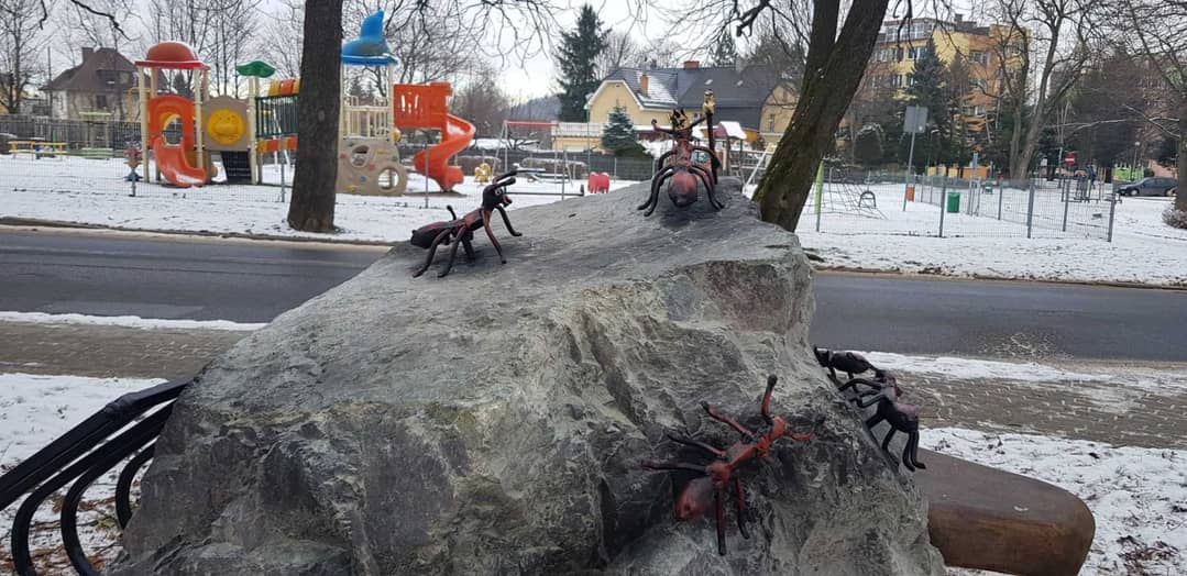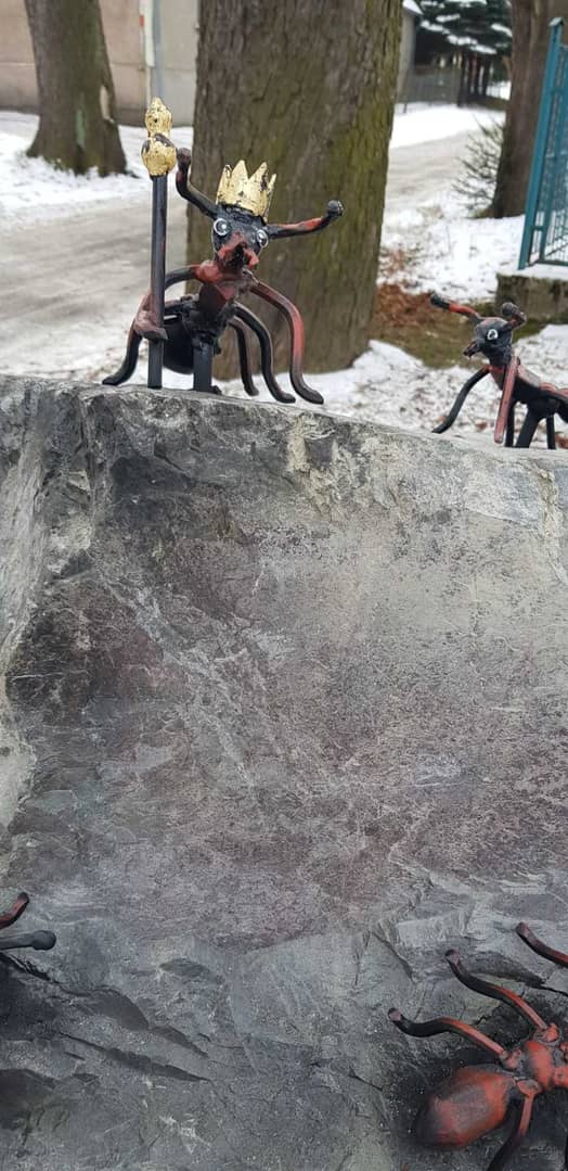 Mrówki obsiadły stojak rowerowy