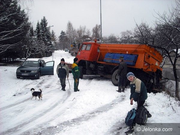 Na ulicach – lodowisko! Pług w rowie