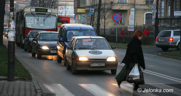 Popołudniowy szczyt na Wojska Polskiego: trudno przejść na drugą stronę ulicy.