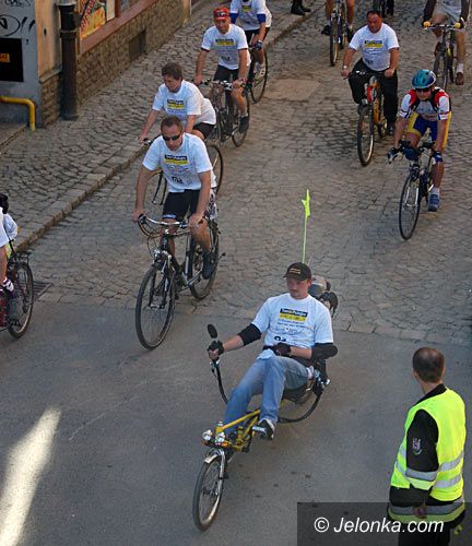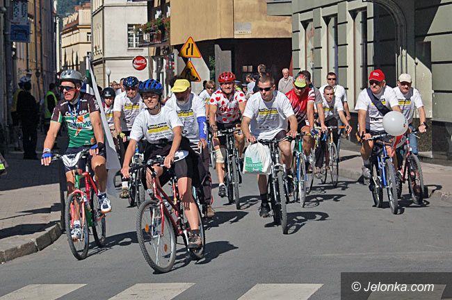 Rowerzyści amatorzy na ulicy Szkolnej po starcie parady.