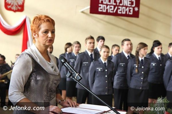 Pasowanie młodych policjantów w piechowickim liceum