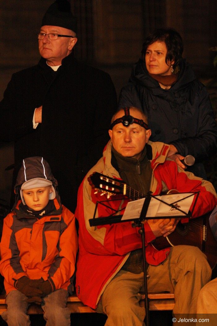 Patriotycznie przy ognisku na dziedzińcu bazyliki
