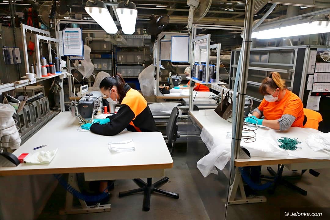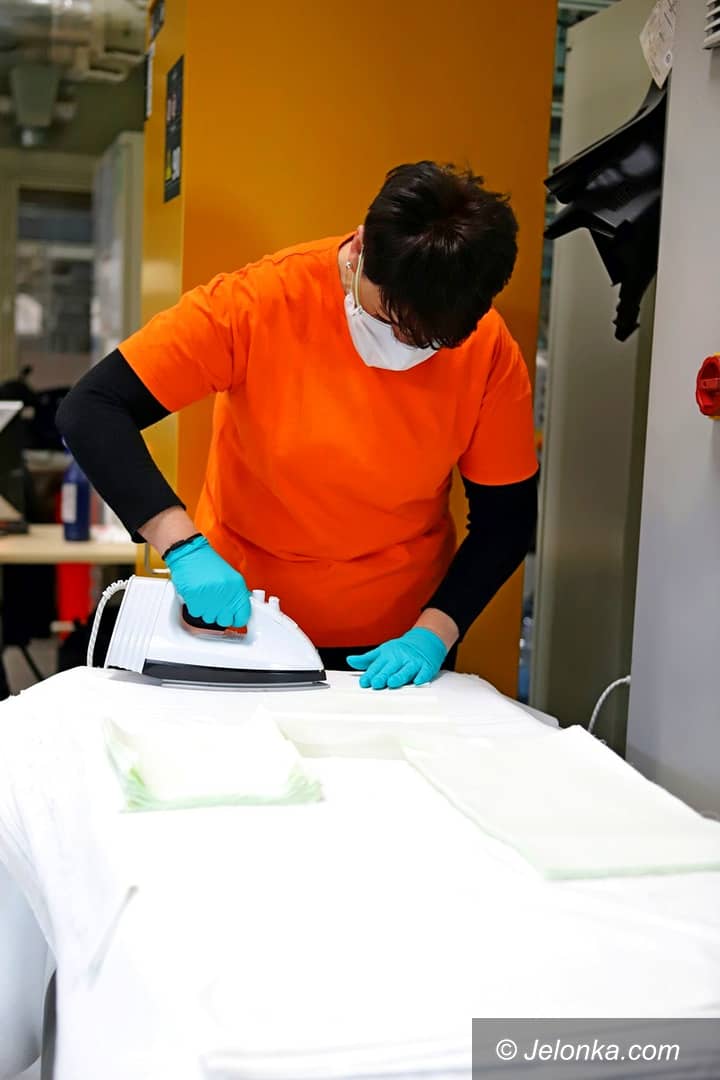 Podczas postoju szyją maseczki dla szpitala