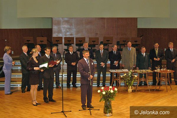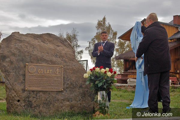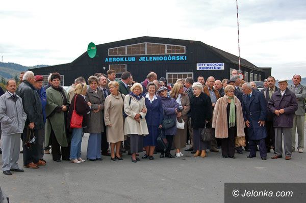 Jacek Musiał, dyrektor Aeroklubu Jeleniogórskiego oraz starosta Jacek Włodyga po odsłonięciu pamiątkowej tablicy.