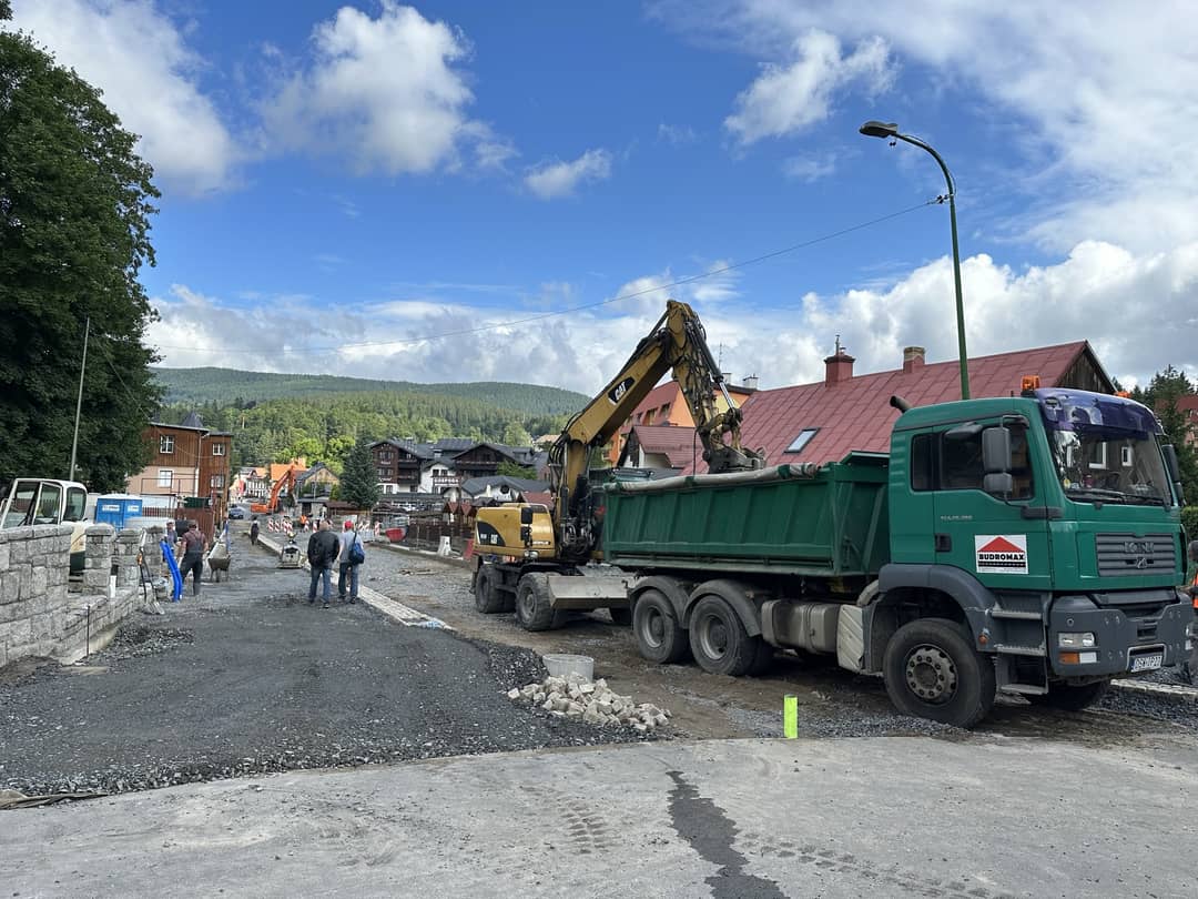 Postęp prac przy budowie deptaka pod Szrenicą