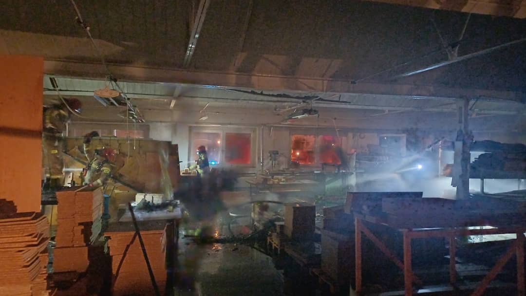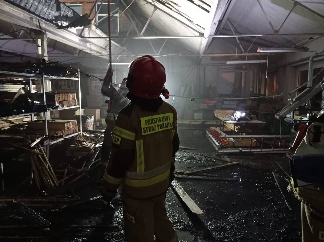 Pożar dachu w fabryce mebli