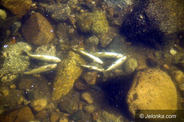 Przez zatrucie rzeki kwasem padła znaczna większość wpuszczonego niedawno narybku pstrąga.