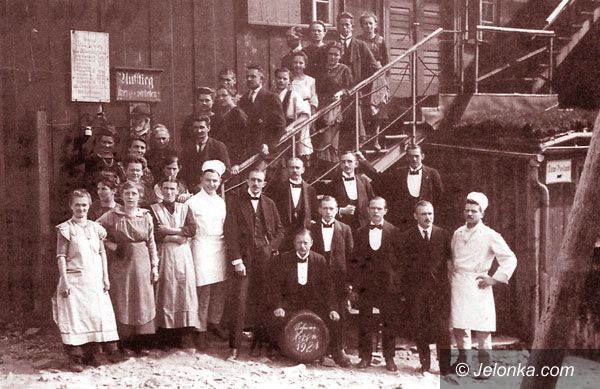 Gerhart Hauptmannstrasse (Kochanowskiego), „Żerom”, a nad wszystkim góruje Śnieżka.