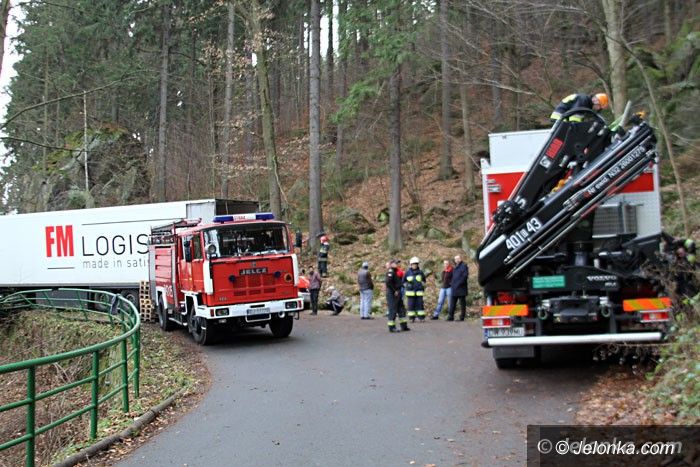Tir zawisł na skarpie pod Perłą Zachodu