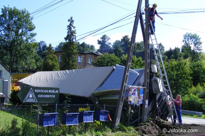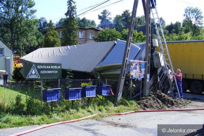 W Dziwiszowie tir stoczył się z drogi i uderzył w słup
