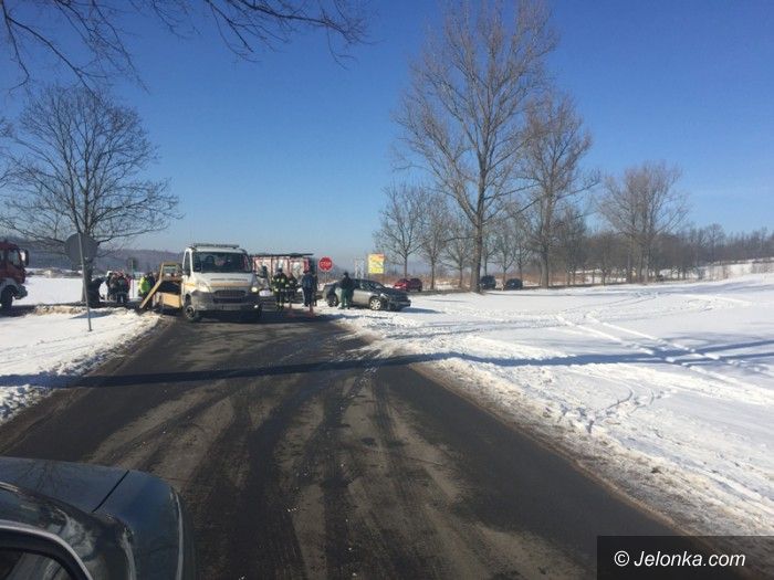 Zderzenie dwóch samochodów w Łomnicy