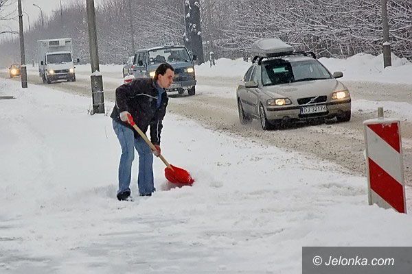 Rano handlowcy z cieplickiego targowiska rozpoczęli pracę od usuwania na taczkach zwalisk śniegu.